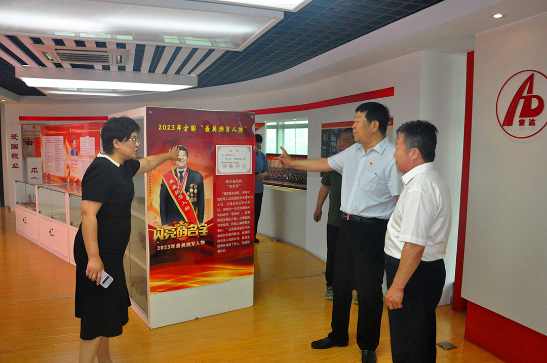 隨后,眾人移步至集團的文化展廳。展示著安達集團多年來的發展歷程、所獲榮譽以及履行社會責任的點點滴滴。陸福寬會長對安達集團在擁軍優屬方面做出的突出貢獻給予了高度評價:“安達集團不僅在企業經營上成績斐然,更是在退役軍人就業創業、關愛幫扶等工作中發揮了示范引領作用,為全社會樹立了榜樣。”