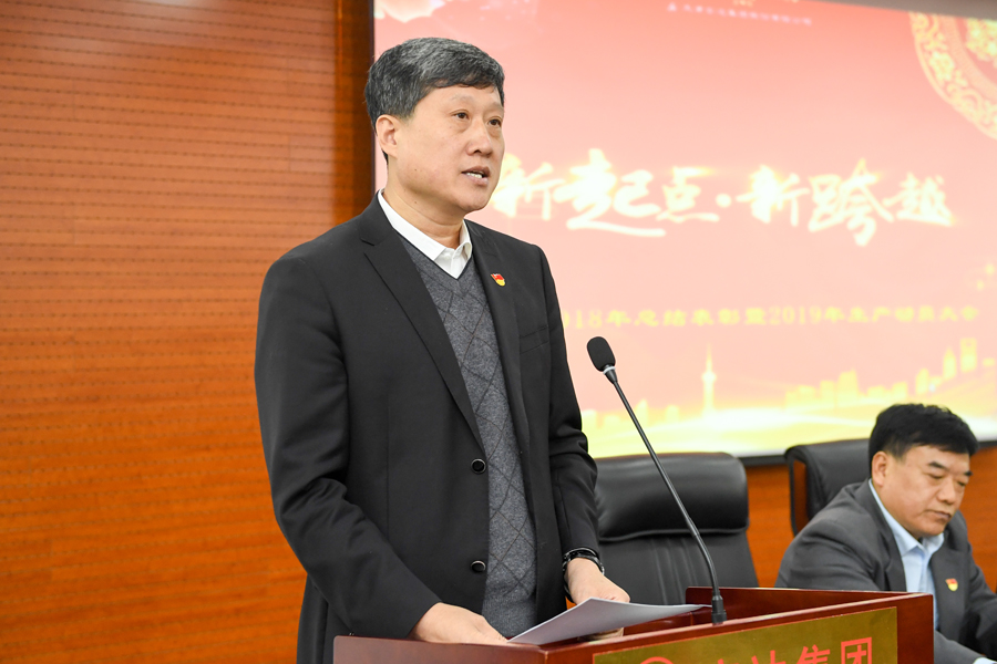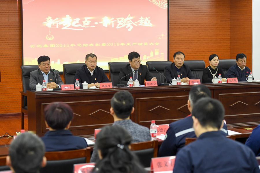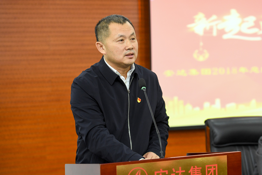 黨委書記、董事長崔洪金首先對獲獎的團體、個人表達了由衷的祝賀并在大會上作出重要講話,他指出:2018年,是貫徹黨的十九大精神的開局之年,是改革開放40周年,同時也是安達集團成立的第30個年頭。面對國際經濟形勢的復雜多變,面對改革開放的全面深化,面對市場不確定因素的進一步增多,面對政策制度的不斷調整,全體安達人不忘初心,正視挑戰,積極作為,迎難而上,整體經營形勢逐步好轉。相比去年,物流板塊在產值上有所突破;機械板塊平穩中有亮點;電子和生物制藥板塊蓄勢待發,銷售服務探索前行,春天在向我們招手。同時2019年,將是安達集團滾石上山,爬坡較勁的攻堅之年,強化改革、戰勝困難的轉折之年,夯實基礎、強力發展的關鍵之年,我們面臨機遇,也面臨挑戰,齊心協力、克服困難、創新發展是我們的不二選擇。希望大家:一是要認清形勢,抓住機遇,融入國家發展戰略;二是弘揚傳統,激勵斗志,持之以恒穩步向前;三是健全制度,創新模式,科學管理,提高效益;四是齊心協力,加快發展,增強員工的獲得感。安達人團結一心,眾志成城,安達集團定將屹立潮頭,取得更加輝宏的成就!